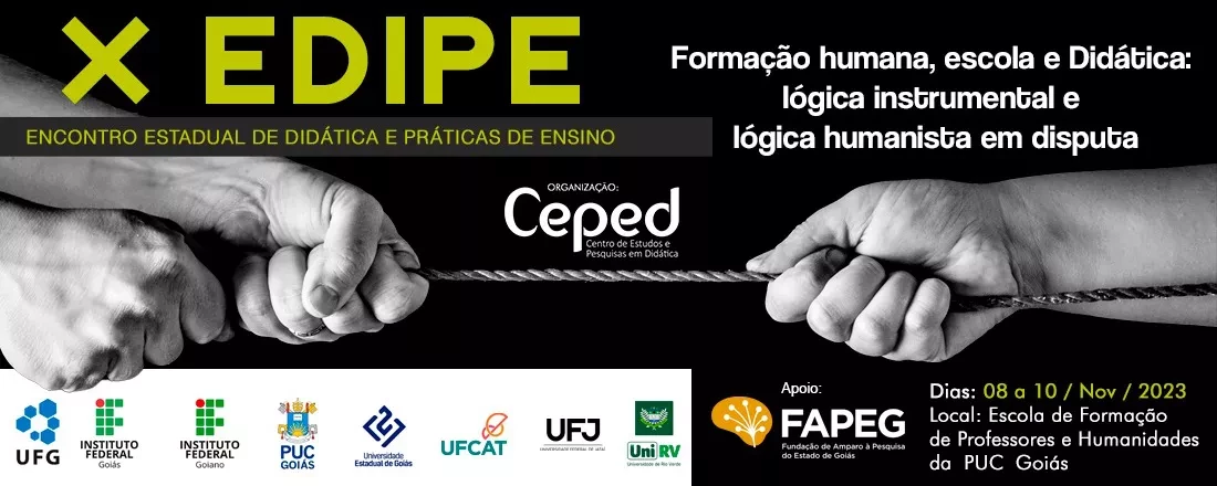 Neste ano, o X EDIPE traz como tema geral "Formação humana, escola e didática: lógica instrumental e lógica humanista em disputa” e será realizado no período de 8 a 10 de novembro de 2023, presencialmente, na Escola de Formação de Professores e Humanidades da PUC Goiás.